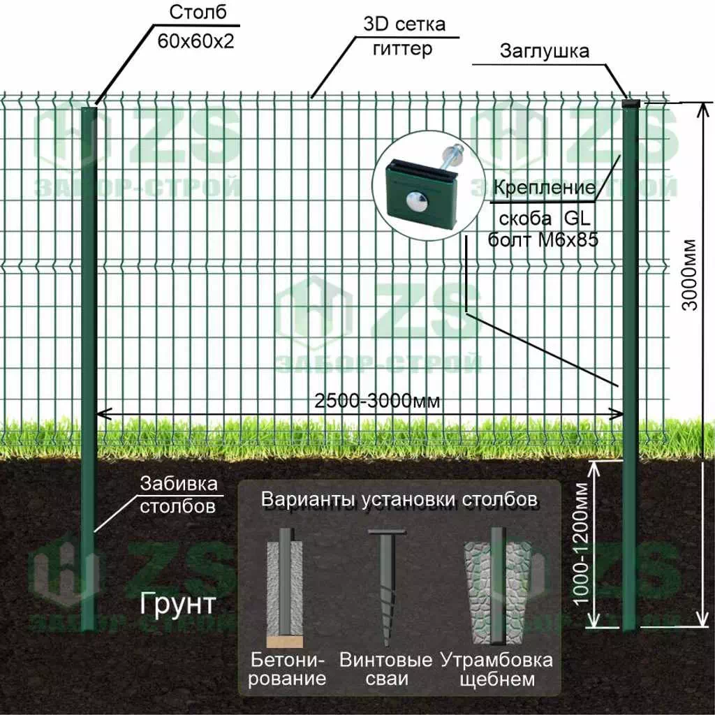 Конструкция забора из 3Д панелей "Гиттер":