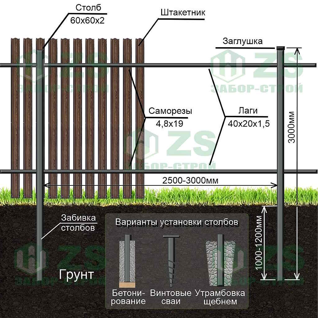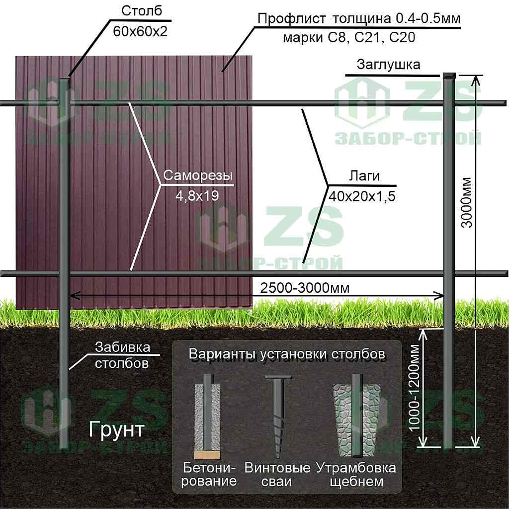 Конструкция забора из профнастила: