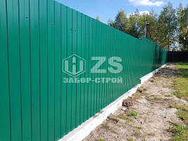 - Забор на ленточном фундаменте из профнастила 6 соток
