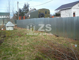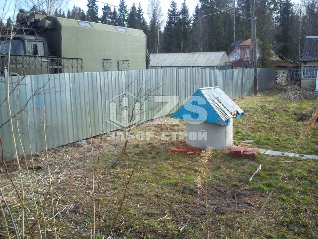 - Забор на столбах с утрамбовкой щебня из профнастила 45 метров