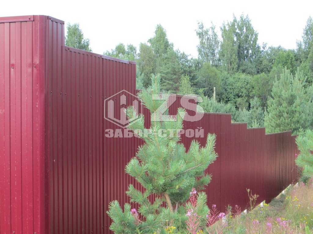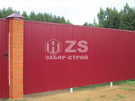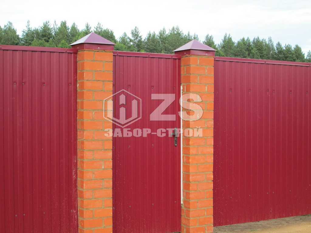 - Забор с кирпичными столбами из профнастила 6 соток